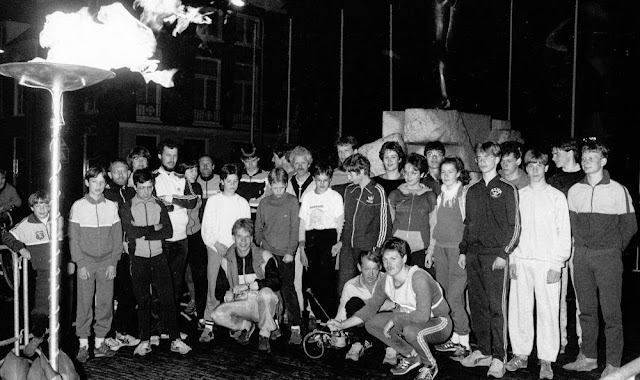 een grote groep atleten het Bevrijdingsvuur al naar Aalten gebracht. Wie herkent er mensen op de foto’s?